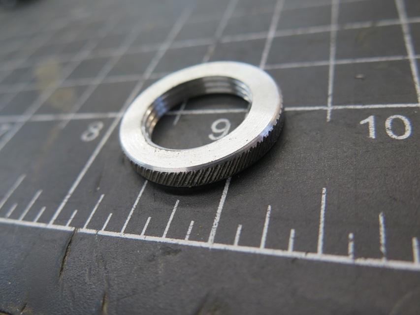 One thing missing during all of this was the actual knob, or handle that fits on the shaft to actuate the switch. Since I wasn't sure exactly how long to make the nose, I left it long. Add the fact that the shaft is now recessed by about 0.050", I really needed the handle to do the final trim on the nose. It finally came in, and I was able to get the nose right on dimension. -- I also needed the handle to get the clocking of the two flats right, so the handle would be vertical.