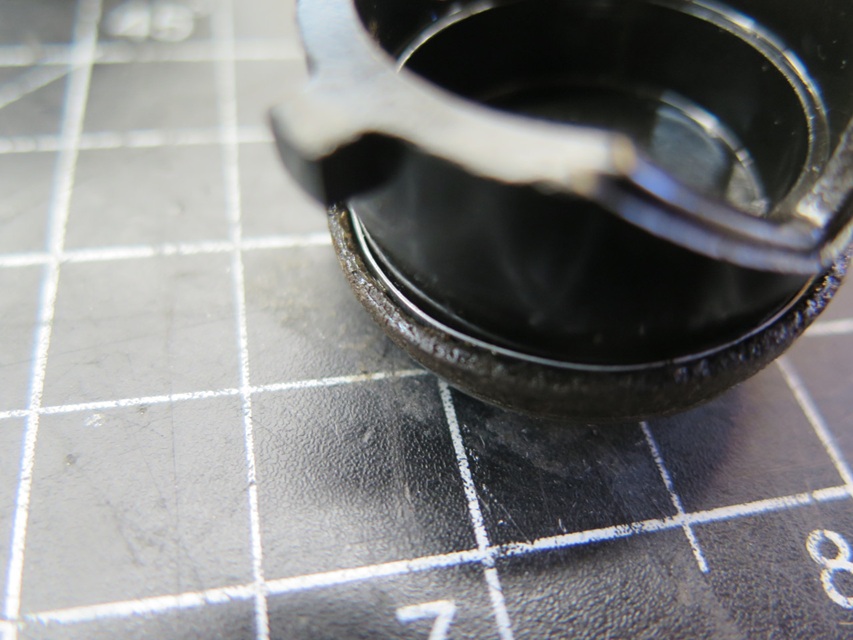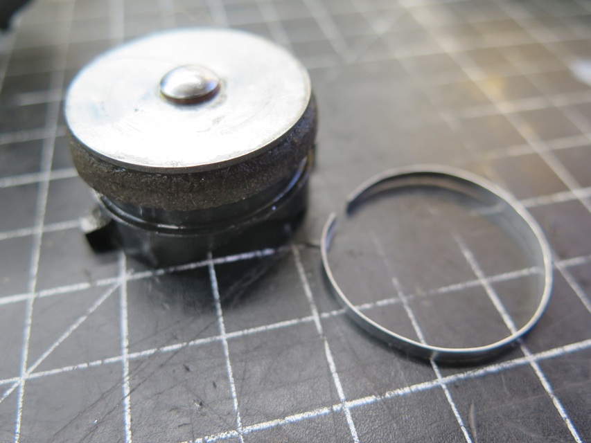 This seemed to work, so I turned to the piston and bore. They both cleaned up well, but when playing with the piston in the bore, I wasn't really able to pull much of a vacuum. I assumed that the leather lip was either worn or compacted too much to get a good seal. Some folks have apparently had some success by inserting some backing material under the piston lip. I tried a thin strip of sheet aluminum. This seemed to help. I tried two strips and it was too much.