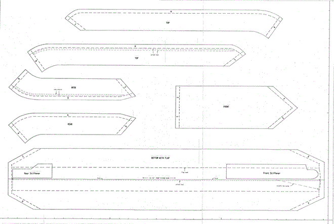 Click for larger FULL SCALE image. This is a very good full scale drawing of the pattern pieces. It was drawn on 24x36-inch poster board, and the scanned image is the same size. The bottom edge and right side have a 1/2-inch margin line wirh 1-inch graduation marks. The image has an edge line right up to the top left corner. To print this 24x36 image with no margins on 24x36 paper, you may need to specify 1/2"x1/2" printing offset to get the intended image area to be centered on the paper at exactly full scale.