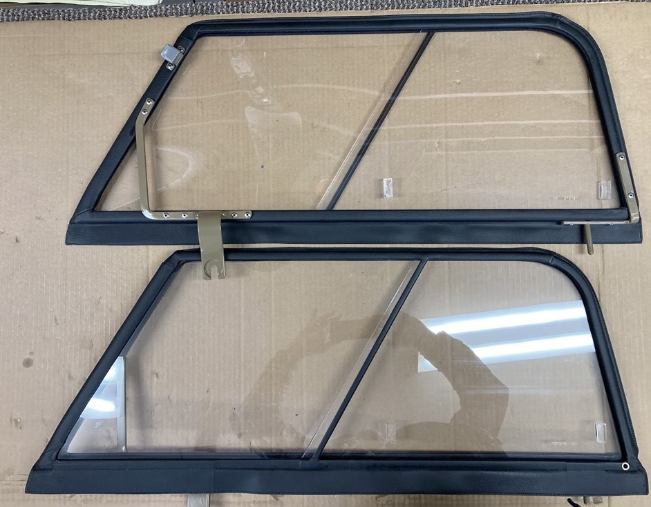 Once the covers are glued onto the frames all the way around. Fit the front window plastic, the felt window channel and the sliding window. Pop rivet the brackets on last and don't forget the copper drain grommet in the lower back corner.