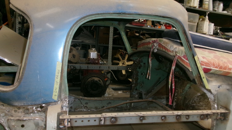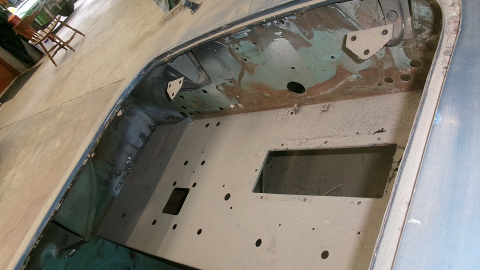 The heater shelf looks good, could touch off a little surface rust in the wiper motor area, Might need a few cage nuts. One more view inside the body nose before we move on.