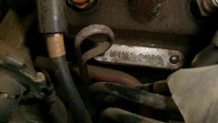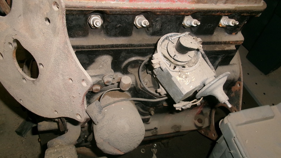 Notice the early style one-piece oil filter canister with matching oil supply pipe. Low starter position, original coil mounting brackets on top of the generator. The number tag may have been re-stamped at some time. Otherwise it should have some additional characters, like "BP15GB/U/H 24580". Although the factory did occasionally make such mistakes, so it could be the original tag. This must be very near the change-over point in June-July 1957 when the leading characters "BP" were deleted.