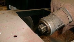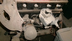 this gearbox is mid-1500 production, covering 40% of all MGA produced. 1-inch 10-spline input shaft with 5/8" spigot nose, correct front cover with original clutch release arm and release bearing is present. Low starter position, internal rear seal, 1-1/16-inch 10-spline output shaft, needs to be mated to mid-1500 propshaft with stamped bell shape dust cover. Notice the rear top aperture for attachment of the shift extension housing is covered with a cloth to keep dirt out during storage. For sure the remote shifter assembly will be around somewhere.