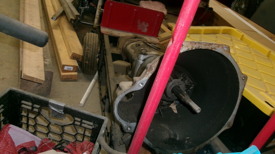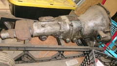 for the interlock arm rising up when reverse gear is selected. Factory documentation has this illustrated wrong (backward) in Workshop Manual and in Service Parts Lists, leading to a lot of field assembly errors. Also the bellhousing is smooth with no ribs, and thin bolt flange, all as original for this model. This will be the gearbox that belongs with the Coupe currently under restoration.