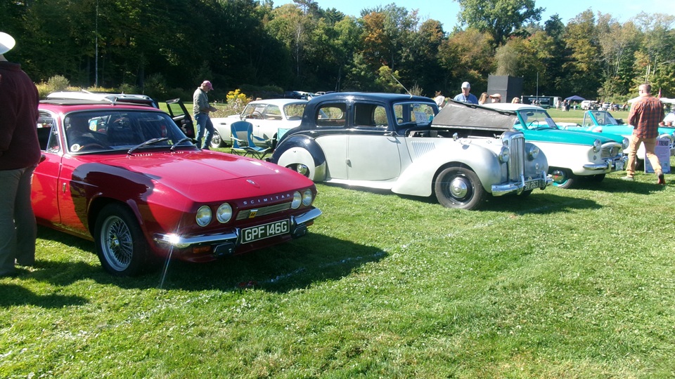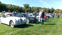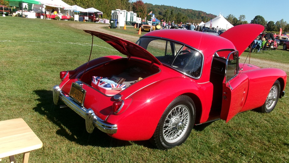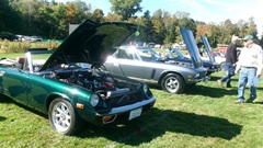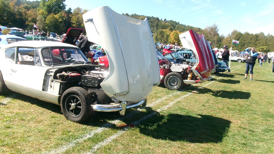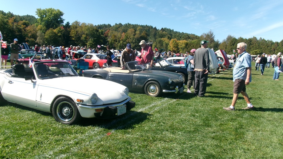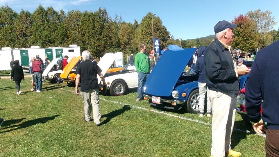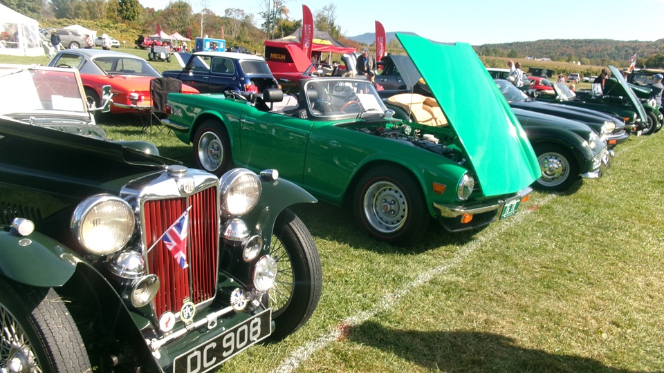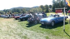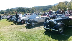 Breakfast in Morrisville, VT, then 10-miles south back to Stowe, VT for the car show. We had registration number 202, filed a month ago, so maybe 300 or so British cars present today (not counting a couple hundred visitor cars parked in the next field). After getting parked in the right line, next business was to walk around nearly two hours taking pictures of the show cars, mostly in small groups. Starting with MGA, see if you can count them, I'm not counting.