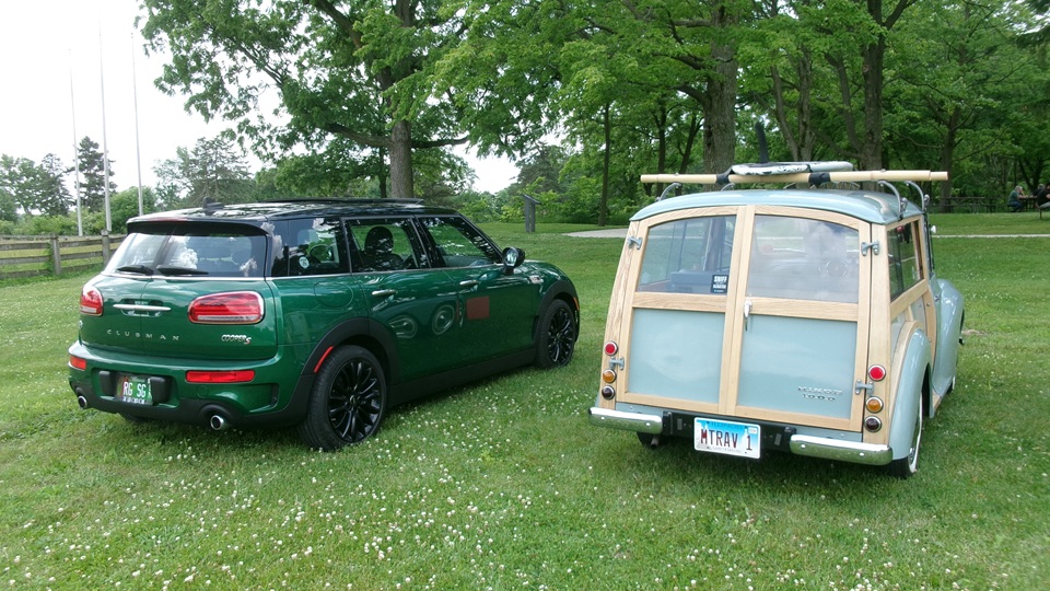 Getting down to the fun stuff (well really it's all fun). One modern Mini, one vintage Mini Clubman woody wagon, one Morris Minor woody wagon. After all the drooling and voting, it was time for a short break, then back to the hotel for one more tech session. We got a little rain just as we were getting back to the hotel. Good timing. A lot of the show cars were tucked into the parking garage to be out of the weather.