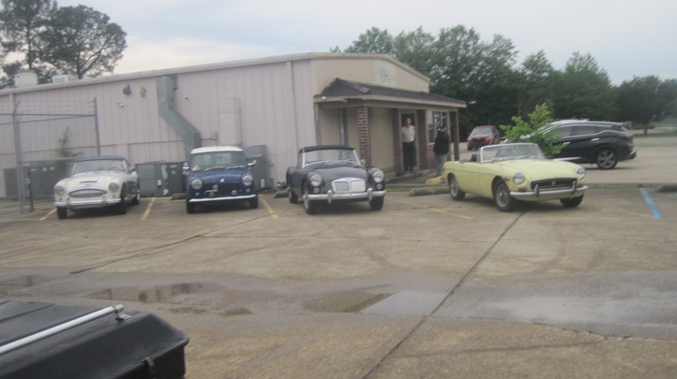 Breakfast in Hazelhurst MS. Had an inquiry about parking direction for the MGA screenwipers. Some bloke has the parking commutator pointed in the correct direction, but wipers parking on the wrong side. Best initial guess is, wheelboxes installed upside down. Wait to see.