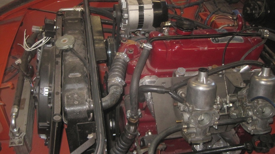 Tommy's MGA as on the other hoist, just parked and needing nothing. the club project car BGT had been pulled out from underneath for tinkering. Looks like it should run, but it only starts if you choke the crap out of it by mostly covering air inlets with your hand, and more of that required to keep it running. Ignition side looks okay, and the alternator seems to work. I notice which I am personally not enthused about. Carefully checking A ll the plumbing