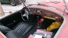 Here is an MGA 1600 with no notable dents, very little rust, lots of patina, a fairly valuable "survivor car". Looks like it may have some racing history early on with front wing side vents, bonnet louvers, racing stripes, alloy wheels, towing eye, fire extinguisher. Plan for this one is to clean it up best as possible and spray it with clear coat to preserve it. Should be an interesting project.