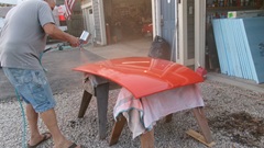 Someone has been working on surfsce finishing the engine bonnet, plus underside finish painting. Tonight the bonnet was getting a couple coats of outer finish paint, "Burnt Orange" for the chosen color.