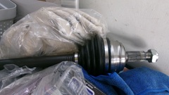 After lunch, most folks gone home. Back to the work bench to finish reassembling the VW halfshaft with new stub axle and CV joint (remember that one from last week). Need this to get the racing Rabbit back together.