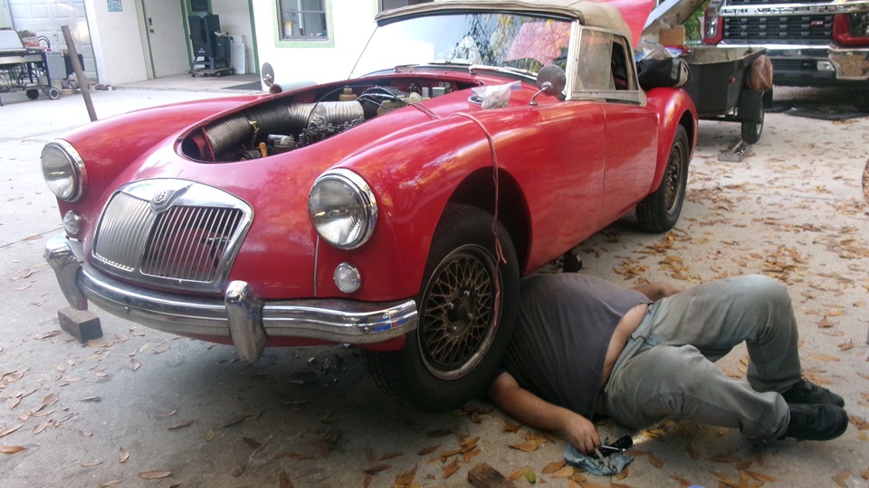 engine in the MGA again. Then a short trip to a local hardware store for some fasteners, and to Napa for an oil filter and some