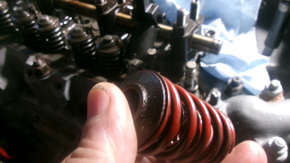 This allows use of a special tool to hook under the rocker shaft and push down on the spring caps. Seems to generate more frustration than progress. There is a picture of a nice 1-5/16" wrench heated and bent to suit for easier access to the crankshaft front bolt.