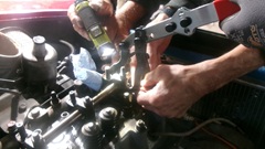 Then someone thought that someone else may have dropped half of a valve lock split cotter down the hole around one of the pushrods. When they pulled out the pushrod to look down the hole, the tappet came up with the pushrod, ending up on it side in the tappet galley space. Another lesson from the School Of Hard Knocks. Always jiggle the pushrod to assure it will break the oil vacuum seal to release the tappet before lifting. This then requires removing the carburetors and intake manifold for access to remove the front tappet cover to put the errant tappet back into its bore.