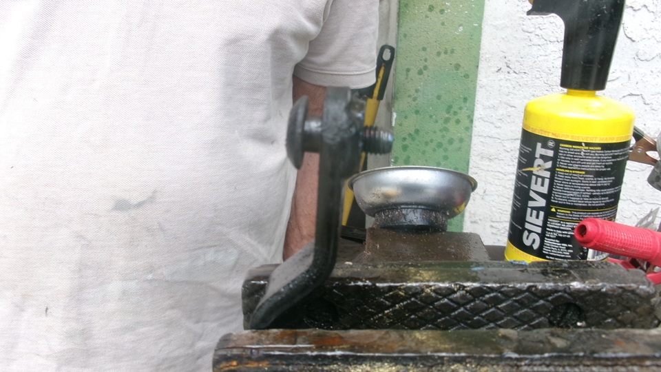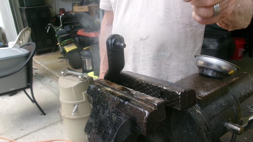 One more litle chore for the dy. These are clutch and brake pedals, maybe from Tina. The small shoulder bolts for pivot points were seized in the bushings (assuming there were bushings in there). Penetrating oil and a #40 Torx driver and small impact wrench was not moving it. Apply some heat until it smokes, followed by more penetrating oil, and then another shot with the small impact wrench got it moving. Drive until it spins, tap the bolt out, more P-oil, more spin until it turns free. give it a dab of grease, and repeat all with the second one.