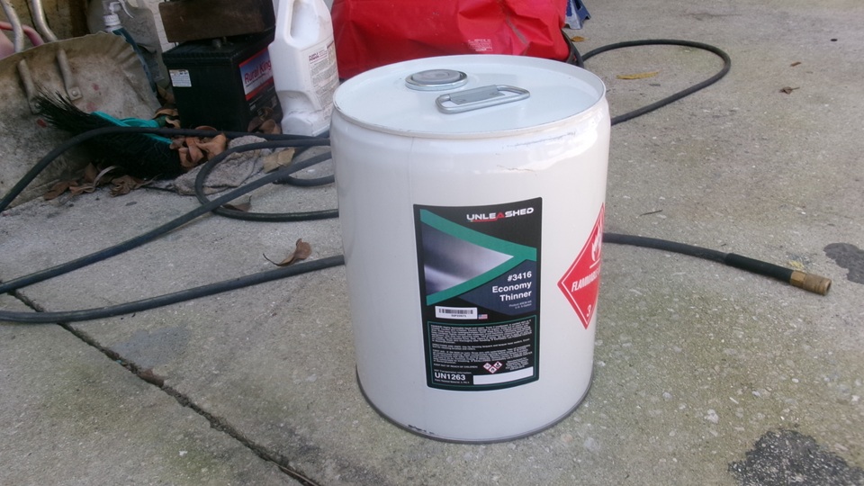 Primer instructions say 24 hours to full dry, so no finish paint today. While cleaning up, and refilling our 1-quart travel can of lacquer thinner, we noticed the shop was desperately low on the stuff. The traditional 5-gallon can was empty, and a newer 1-galllon can was down to a pint when we were finished. So tomorrow (after the business week end break) we will fetch another 5-gallon can for the shop. The stuff is less expensive in larger lots, if we shop around and buy it from the right supply house. For now, clean up, pack up, close up, and head to Ace Hardware to buy some rubber bumper feet for the new tool box, and a hand full of fasteners and other supplies for re-stocking the Magic Trailer. Then to mid afternoon lunch and WiFi time.