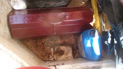 a loose oil drain plug, which we overlooked when installing the 1800 engine with new crankshaft, 128-miles, 2-1/2 weeks go. OOPS! Easy fix, tighten the drain plug, and add 1/2 quart of oil to top up. -- While it was up with the front wheels off, we were looking to identify a notable "clunk" in the front suspension,which has been bugging us since about same time as the broken crankshaft back in November. That turned out to be loose swivel link trunnion bolts and loose upper a-arm pinch bolt in the RF suspension. those must have been left loose last time we were replacing lower a-arm bushings (15-mo, 16,700-mi). That was a bit of a shock, kick me now. Spend ten minutes checking and tightening all of the front suspension bolts.