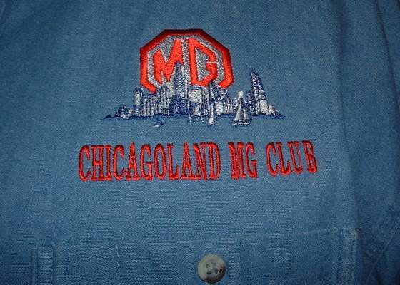 NEW - Blue Denim long-sleeve shirt with three-color Club Logo embroidered over chest pocket. Private brand of leading embroidery house.