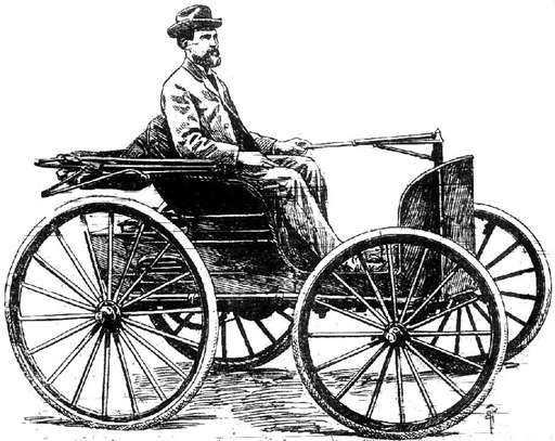 Two of the starting vehicles were electric and four were gasoline-powered. The electric cars, the Electrobat of Morris & Salom of Philadelphia and the Sturges of Chicago, were not serious competitors because they had not been able to establish recharging stations along the route and could not be expected to complete the race. Of the gasoline-powered cars, three were Benz vehicles that had been brought from Europe to be entered by H. Mueller & Co. of Decatur, IL, R.H. Macy & Company of New York, and the De La Vergne Refrigerating Machine Company of New York. The third of these Benz-powered cars had won the Paris to Bordeaux race the preceding June that inspired Kohlsaat to organize this race. The fourth gasoline-powered car had been designed and built by J. Frank Duryea, the 25-year-old chief engineer, and only real employee, of the Duryea Motor Wagon Company. Duryea was born in Washburn, Illinois, northeast of Peoria, and grew up on a farm in Stark County. After completing high school, he had followed his older brother Charles to Washington, DC, then to New Jersey, and finally to Springfield Massachusetts, where eventually, between 1894 and 1895, he designed and single-handedly built the vehicle entered in the race. The Times-Herald erroneously referred to the Duryea entry first as being “of German make”, and then as the “result of three years’ inventive effort on the part of Charles E. Duryea of Peoria”. Although Charles had arranged financing and took credit for much of the enterprise, he had returned to Peoria in 1892 to manufacture bicycles, and it was actually Frank’s creativity, skill and persistence that brought the car into being.