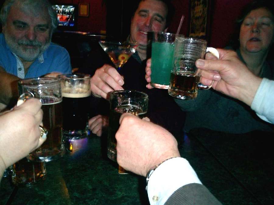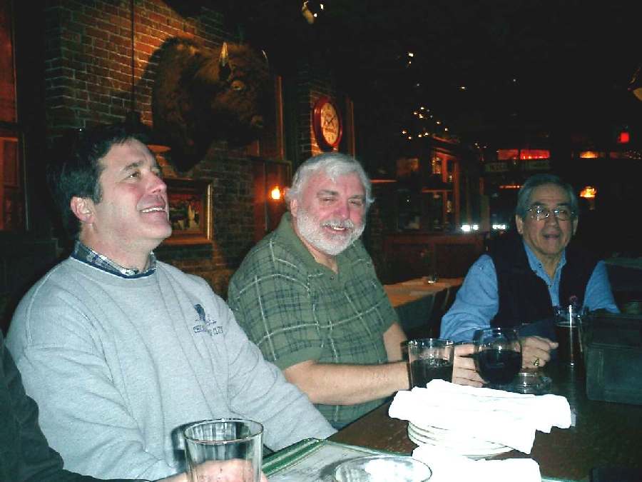 Traveling accommodations for our second Amtrak road Trip to St. Louis included spacious seats on the upper level of the Texas Eagle, which left Chicago at 3:20 p.m. on Friday, January 27. The annual party actually starts prior to boarding, at the pub in Union Station, which is where we met Diana and Oscar Gonzales, Deb and Bill Mennell, and Jim Renkar for lunch. But this is always just the first course. Once en route, we delve into the rations like shrimp cocktail, pate, tuna with jalapenos, cheese and crackers, desserts, wine and spirits, etc. that make up our potluck on rails. Our very comfortable hotel was just across the street from the riverfront area known as Laclede’s Landing, now a restored area with more than 30 restaurants, according to the helpful hotel clerk. The restaurant that we chose for our Friday evening refreshments turned out to be the one in which we had lunch on our previous Amtrak trip to this city. The fact that it was a microbrewery may have contributed to the chances of this coincidence occurring.