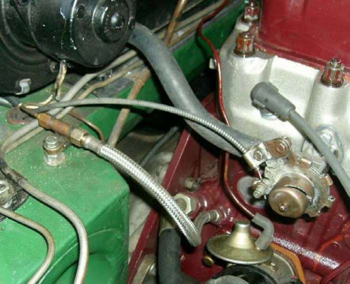 I would suggest you check all the rubber hoses on your car before you take it out this spring. The hose that split sells for around $25. The stainless braid on my old one was very dark from tarnish. I checked with Moss on this and they do not have a recommendation on how often to change the hose or life expectancy. I will not wait another 40 years to replace this hose. When you replace rubber brake or clutch lines, consider changing the pressure line. I know I will.