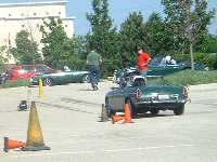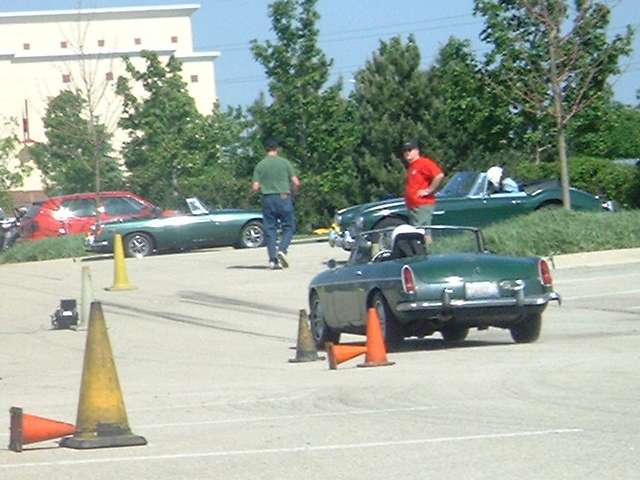 At the open invitation of the Austin Healey Club, Chicago Region, twenty-five drivers, including a dozen CMGC members with MGs, took advantage of the space at the Warrenville Cantera theater complex to lay down some tire marks and squash a few cones while trying the beat the clock. There were big Healeys and Sprites, MGBs, MGAs, Midgets, and a pair of Lotus 7. One new Mini came to visit, but not to play. Better than good, a great time was had by all. Most of the gang finally retired to the Red Robin for natter ‘n’ noggin while scores were totaled and awards were presented. Final official tallies were not available in time for printing here, but you might find them at the AHCA web site here: