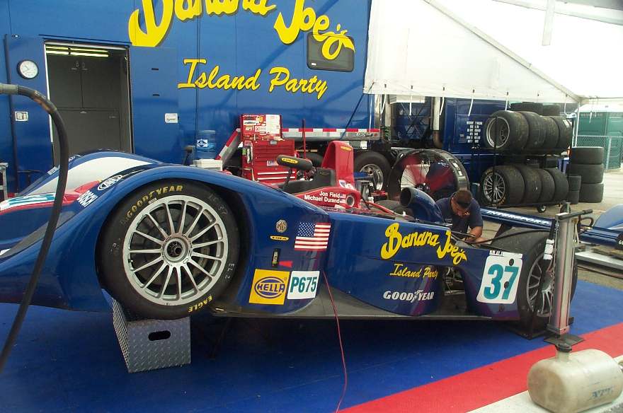 The #37 blue and red MG Lola of the Intersport team started late and was out for most of the race. We had been by their paddock before lunch, and it seemed that they were having some problems with the motor then. But the car was fast when it was running. Their #30 Lola/Judd, in the LMP 900 class, took fourth overall, after the #2, #1, and #38 Audi R8s.