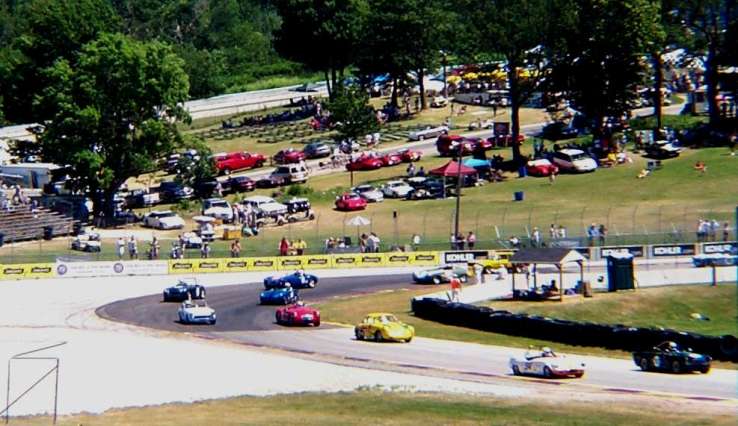 The tried-and-true formula worked as well this year as in the past: we took our tent to Plymouth Rock Campground, basically across the street from Road America near Elkhart Lake, Wisconsin. We had made the reservations along with quite a few CMGC members back in January: other campers were Kim and Diane Tonry, Bill and Debby Mennell, Barney Gaylord and son Elliot, Curt Bork and Sheryl, John Schroeder, Bill Hedrick, Shirley and Roger Goebbert, Dave and Susie Tucker and son Jeff (and two friends), Jeff Powell and Pat Morse. And we were all there to see the Kohler International Challenge with Brian Redman. This event has had a few different sponsors and names (Chicago Historic Races and Brian Redman International Challenge are two we know) over the years, but always meets on the third weekend of July.
