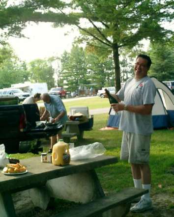 Saturday night at the campground proved too hot to burn any of the half-ton of hardwood that Bill and Debby Mennell had brought in their full-sized pickup truck. But we all had a very good final hour seated in a circle about the ring where the fire would have been if the temperature had been a little more accommodating. The beverages were cold and abundant.