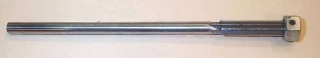 | The assembled reamer, showing one of the set screws. We have also made some reamers by welding, but the high temperature is probably not a good idea for a precision tool. Note that cutting edges have been ground at the original trailing end. We used a die grinder on this reamer, but we have also had perfectly acceptable results using a hard white stone.