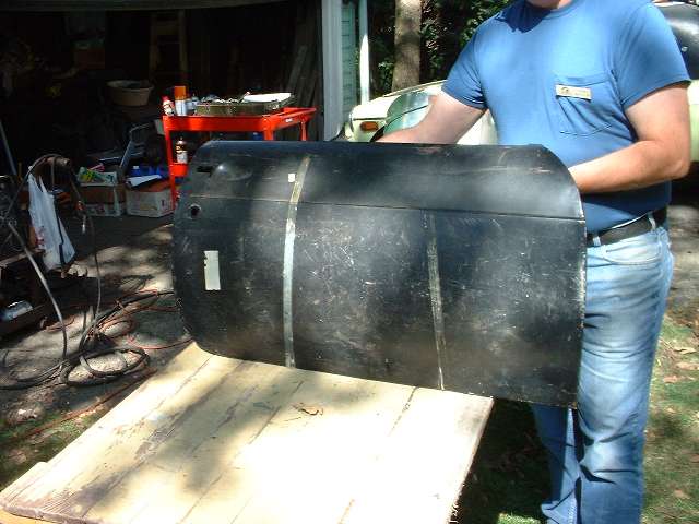 The door we used for repair demo was removed during Cowboy’s door replacement tech session last November, then recycled as the “door” prize at the Christmas party, and now recycled again for another tech session. The newly re-skinned MGB door will likely show up for sale at next February’s swap meet, and hopefully will also be recycled onto another MGB for continued street use. Some good old parts never die.