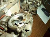 You know how the piston has two ¼” or so holes on the bottom on the side closest to the cylinder head? Those lead to the open area above the piston and inside the air chamber. There is another pair of holes on the outside face of the carb that mates to the air cleaner. These also lead inside the air chamber, but to the underside of the piston.