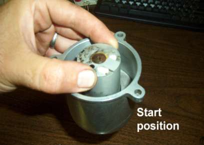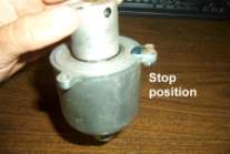 9) using a stopwatch, check how long it takes for the air chamber to travel from the starting position to the point where the edge of the piston is even with the bottom edge of the dashpot. The factory book suggests using the carb part # tag to make a stop for the piston.