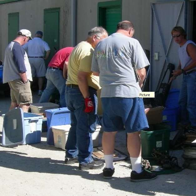 After the auction, everyone loaded their treasures into their cars. Then all of the parts were placed back into boxes by category and reloaded into the locker. And once again the club locker is stuffed to the gills with parts and the floor can’t be seen!