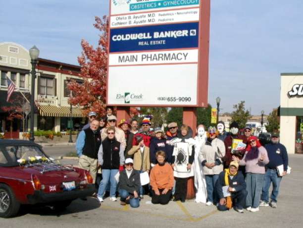 On Sunday the 30th of October, the Club's Halloween Rally began in scary Downers Grave. (Get it? A play on words here, it's really Downers Grove). It all happened on October 30, and all 12 participants were scary, (albeit some more than others, see pics). Those scary persons Kim Tonry and Dean Swanson designed this rally and it had us all shivering in terror! At the end, we all had a really scary lunch at Quigley's, that scary Irish Pub in Naperville.