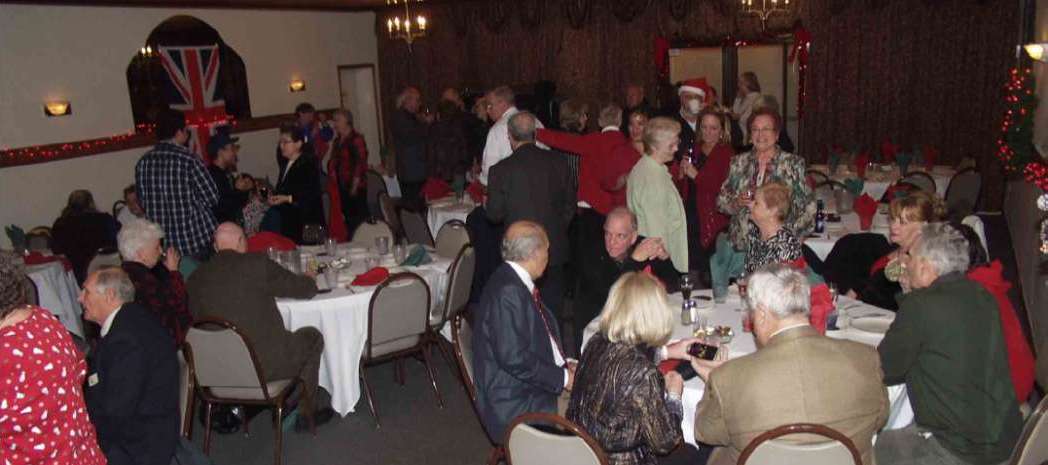 The affair was at Bela Vista Banquets, a new location for the clubs in Bensenville, Illinois. The room was fully decorated in Christmas lights and wreaths and, of course, the flags of the USA, England, Wales, Scotland