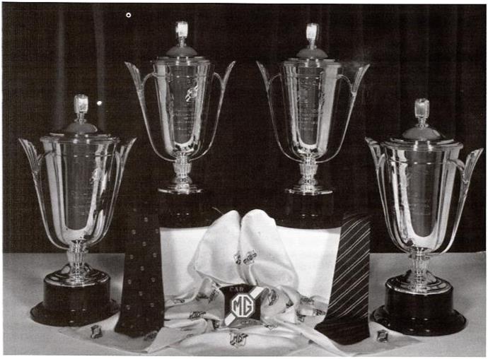 The only known photo of the four silver cups together appears in Mike Hawkes' book "The First 70 years of the MGCC", and although on the occasion of the Club’s 70th Anniversary we tried once again to get them all together, we were unfortunately let down by the Australians and the Oceana trophy did not arrive in England.