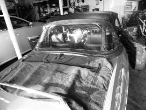 A: A trick taught me on changing my '73 top was to leave that rear bar loose and not attach it to the top. It leaves some slack in putting the top up, making it easier (after it’s up, you then move the bar into place and it tensions the top nicely). And gives the same in taking it down.