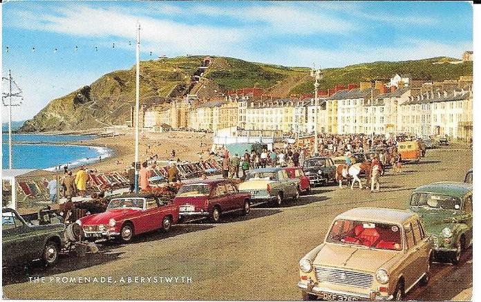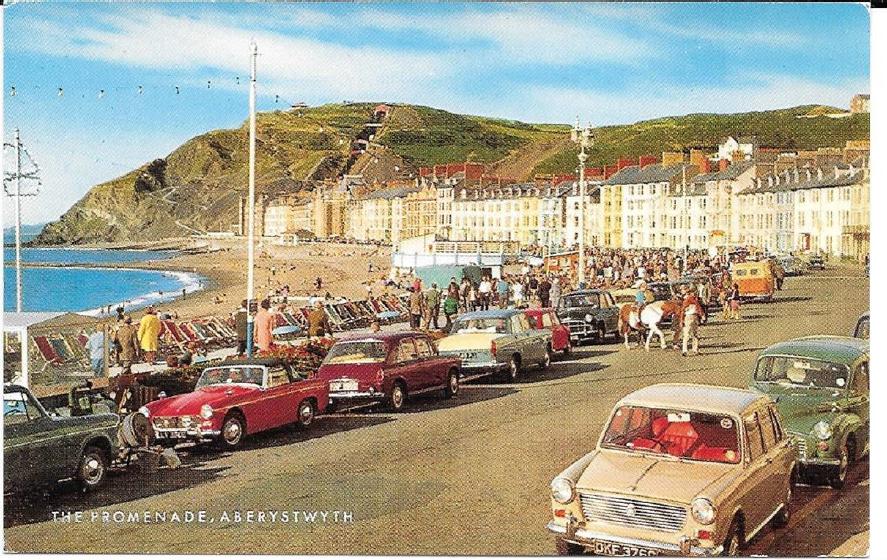 This Month’s card is from the Promenade in Aberystwyth, a coastal town in Wales on the West Coast of the UK. the MG is of course the Red Midget. It is interesting to note that this post cards is from a time when most cars that you saw on the road in England, where indeed from English car manufacturers. I am not sure what the brand and model of the car next to the horse is, but it appears that all other cars are Morris, Austin, Mini etc.