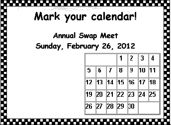 It is also about the last chance to let us know any good suggestions for 2012 driving events. Remember? What do we need to do to get you to participate in two times as many events as in 2011? I wrote about that in December and January. You can go back to the Internet if you don't save the old Drivelines to re-read our question and let me know your feedback and input at the business meeting on Monday evening the 20th.
