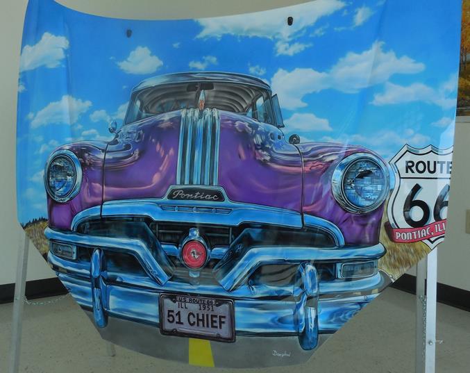 Route 66 photos made by Michael A. Campanelli. These were displayed over the three floors of the tiny spaces. A very similar exhibit was presented at the Art Institute of Chicago several years ago. If you missed the show at the Art Institute, be sure to see in Pontiac. A military commemoration is adjacent to the Route 66 museum and included a photo of the daughter of The Bakery’s owners who commands an Air Force refueling plane.