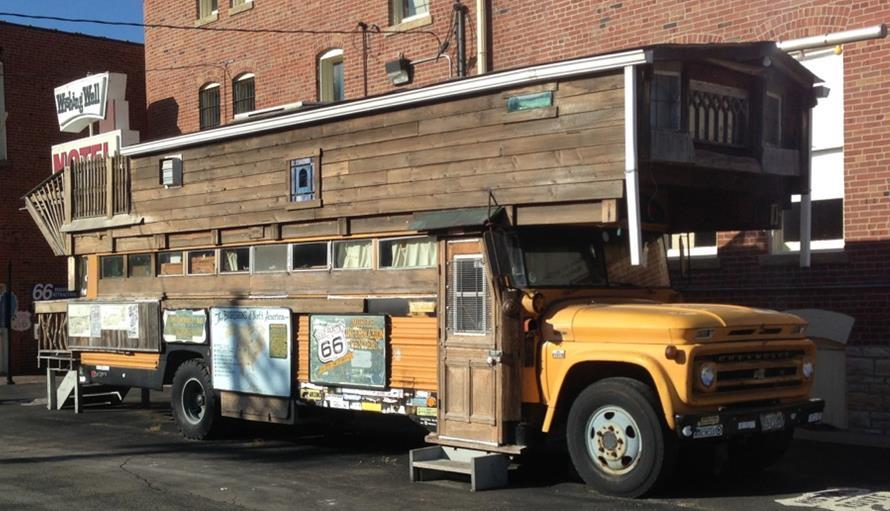 Then it was lunch time followed by a stop in The Bakery for cookies, cupcakes and scones before continuing to the Route 66 museum. A very 60s V/W hippie exhibit supplemented organized cases of memorabilia. The former jail housed the spectacular exhibit of
