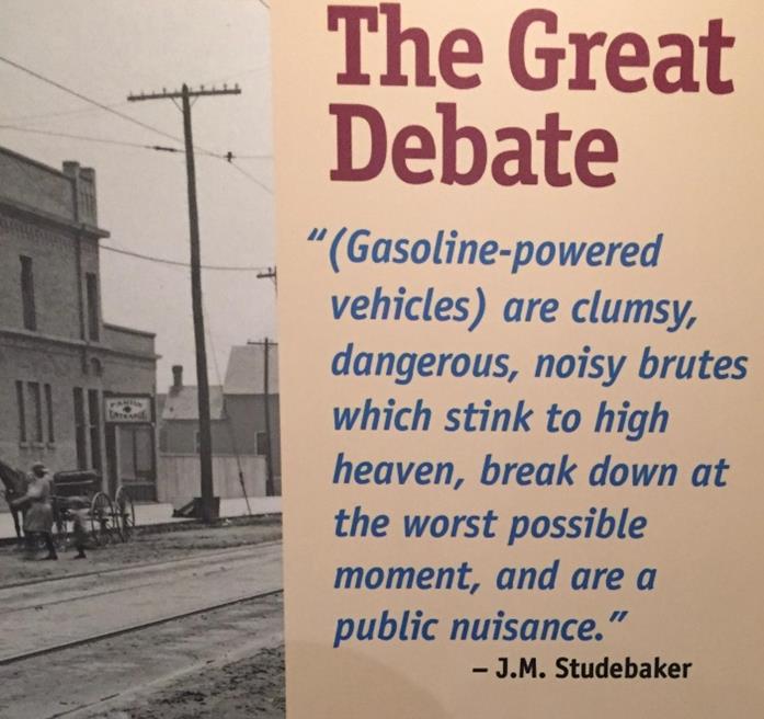 Studebaker then started with automobiles too. They were pioneers of electrical vehicles and had a strong opinion about gasoline motors as can be seen in this quote. When the market clearly went to the gasoline powered cars, they dropped the electric cars from further development.