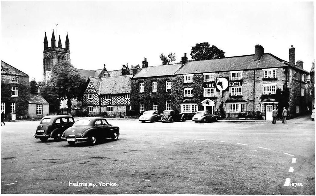 A card from the Black Swan Hotel in Helmsley, Yorkshire, with a MG +ZA in the foreground.