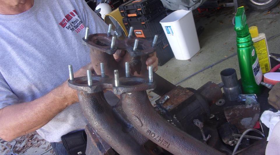 Clean threads, and new studs in exhaust manifolds