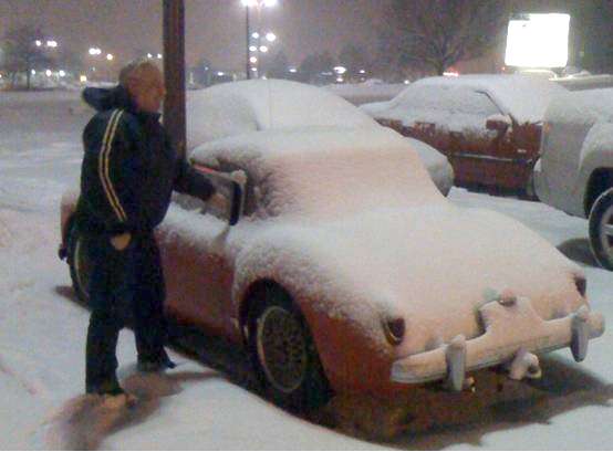 Barney digging out his MGA after a fun night of Natter ‘n’ Noggin at Roundhead’s in Downers Grove. Photo courtesy of Scott Davis