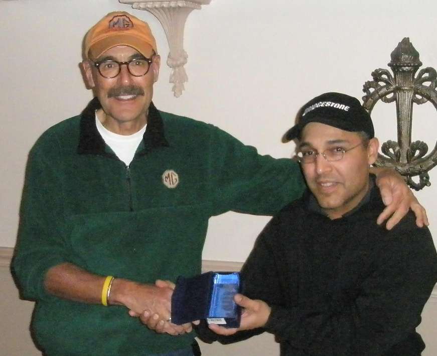 The out going club president had the privilege to select the recipient of this reward. Dino Perez presents the 2012 award to Reinout Vogt for his contribution to resurrect and strengthen our driving program. The club again has a full calendar of driving events, dash plaques, trophies, consistent driving instructions, rules, and annual awards. We’re also joining forces with the Vintage MG Car Club of Chicago to broaden the variety of MG’s at the driving events.