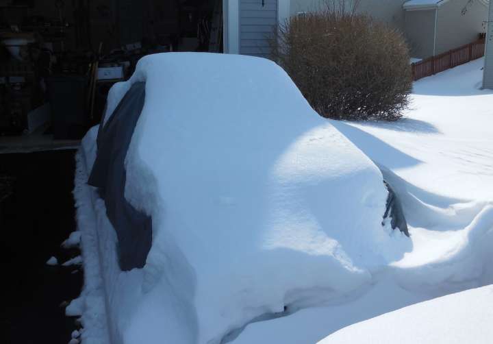 Is winter over yet? Somewhere under this blanket of snow is a MGB.