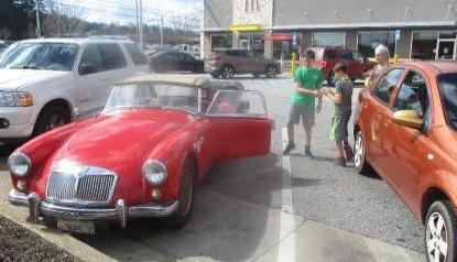 location, crowded with MGs and Triumphs and a few other pre-1980 British cars. Next day in in Newman, GA we had another walk-in, this time an older lady accompanying three young boys who would like a closer look at the little car. So, we did the right thing, allow sit-ins and pictures and enjoy the happy grins on the kids’ faces. Another good day.