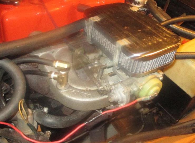 Drill and tap the intake manifold for vacuum ports for anti-run-on valve and vacuum retard distributor. Pop the top off the carburetor for minor mods to seal the original top vent and add a threaded vent for vapor recovery and anti-run-on port. Clean a corroded fuse block and install correct fuses. Install Cadillac horns (woo-hoo), fix a couple of wiring errors to get wipers and lights working, replace a faulty flasher to make turn signals work. Had a